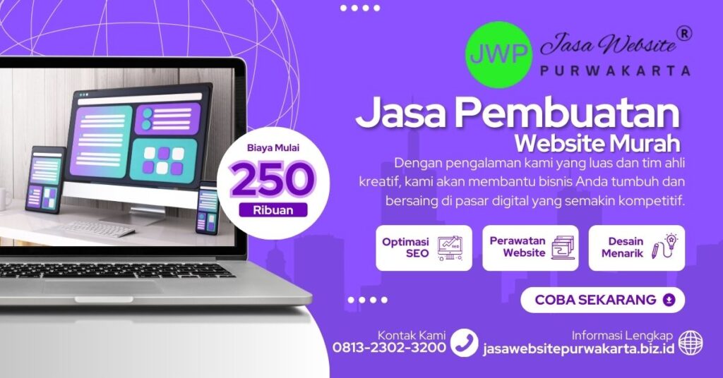 Apakah Anda sedang mencari jasa pembuatan website di Purwakarta yang profesional, murah, dan bergaransi? Kami hadir melalui jasawebsitepurwakarta.biz.id untuk membantu UMKM, sekolah, perusahaan, hingga toko online memiliki website modern dan SEO friendly.